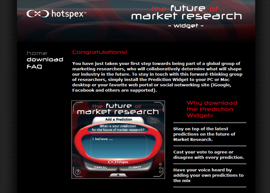 Marketing Research and Intelligence Association (MRIA) members can submit their predictions for the future of market research and vote on whether they agree or disagree with other users predictions.